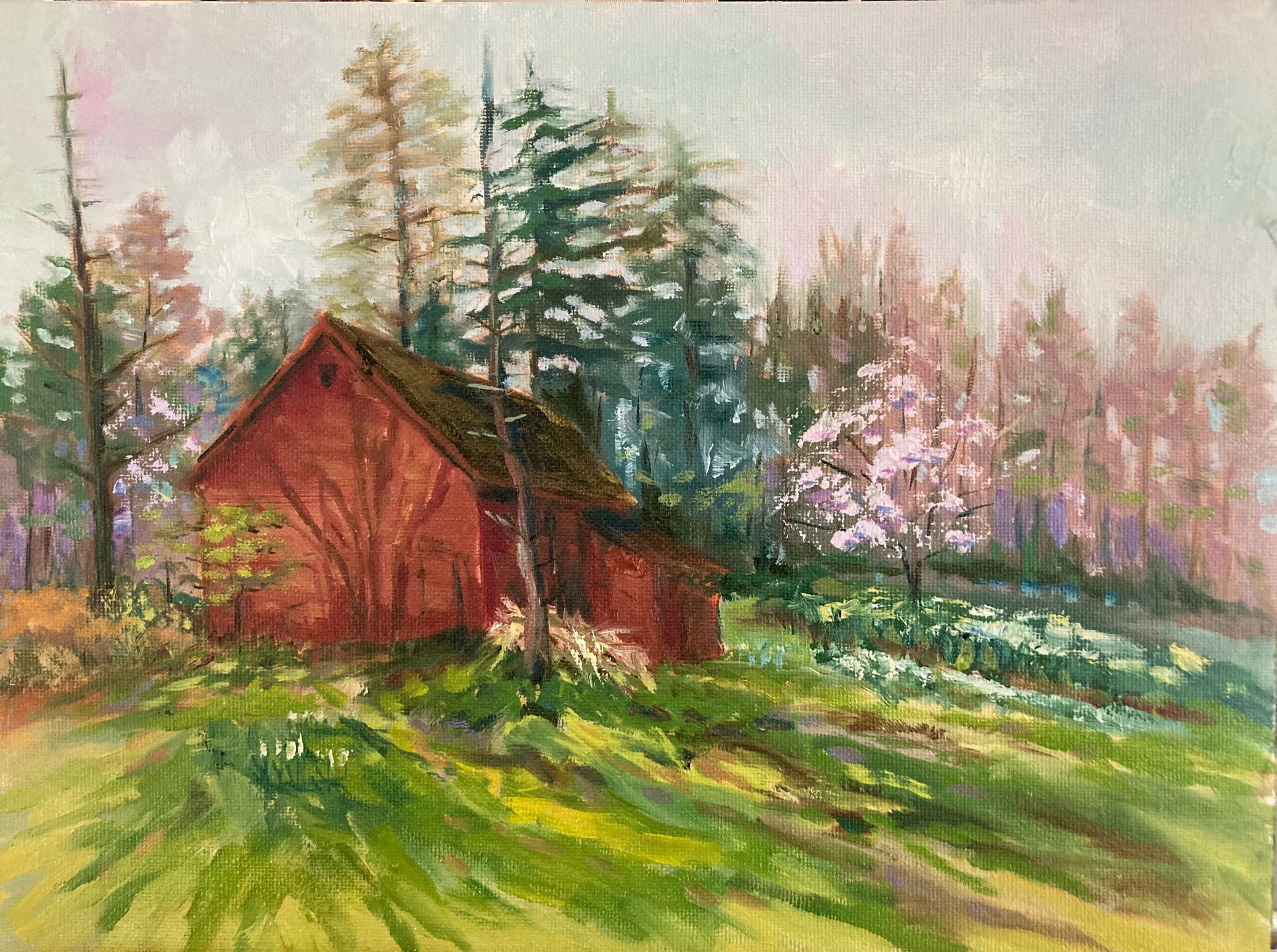 Barn at Brincka Gardens Media: Oil on canvas Size: 9" x 12" Price: $210.00 Contact me topurchase this painting Prev Next
