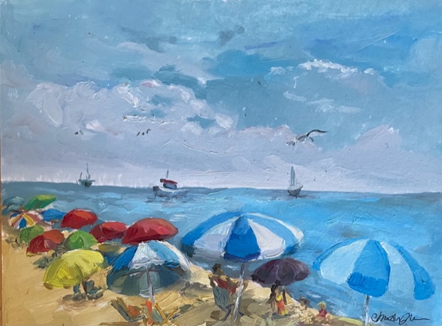 Umbrella Beach Media: Plein Air Oil - Framed Size: 6" x 8" Price: $210.00 Contact me topurchase this painting Prev Next